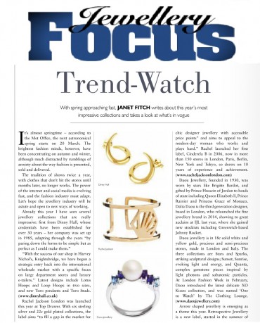 By Dalia Daou in Press / / 0 commentsRead moreWith spring approaching fast Janet Fitch writes about this years most impressive jewellery collections in her Trend Watch article for Jewellery Focus, with an extended two paragraphs on Daou Jewellery.